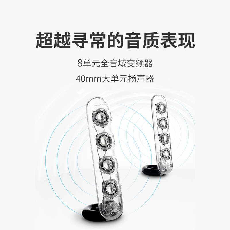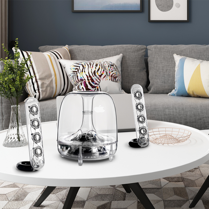 如果你买音箱最看重的是颜值,那么这款harman/kardon 哈曼卡顿 SoundSticks III 水晶有线版音箱会是你不错的选择。它仿水晶玻璃的整体构造简直是艺术品,中央低音扬声器20瓦的规格,看起来有些像金鱼缸。另外其设有两个卫星箱共八个全音域变频器单元,相信不管是客厅还是主卧它都能完全hold住,带来一种极浓的现代感。