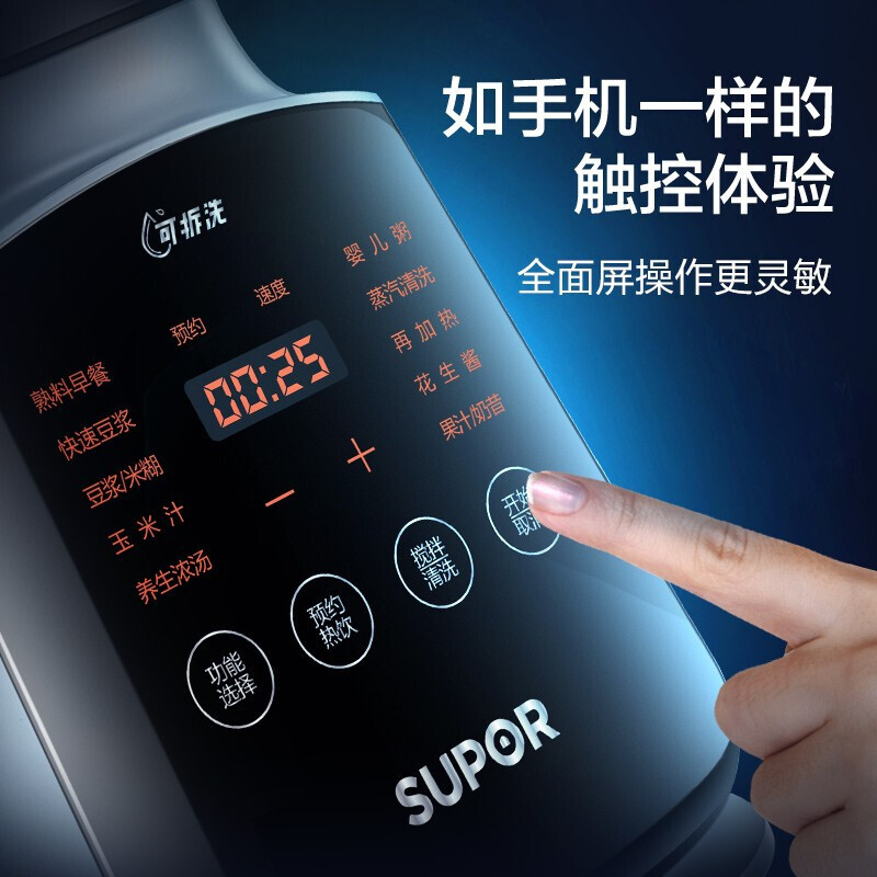 苏泊尔(SUPOR)破壁机低音降噪可拆洗蒸气自清洗家用多功能智能预约加热豆浆机多种粒径研磨机 SP902S