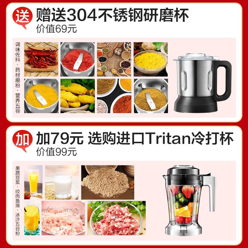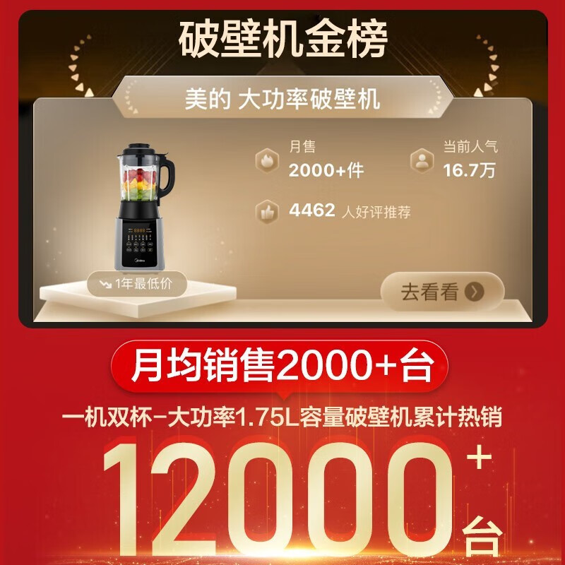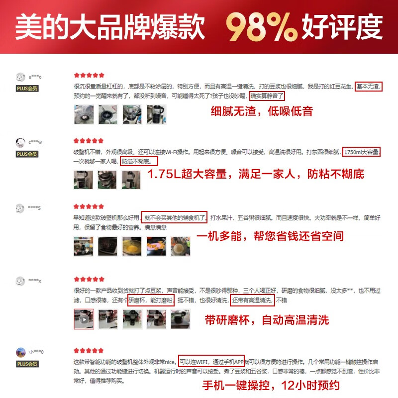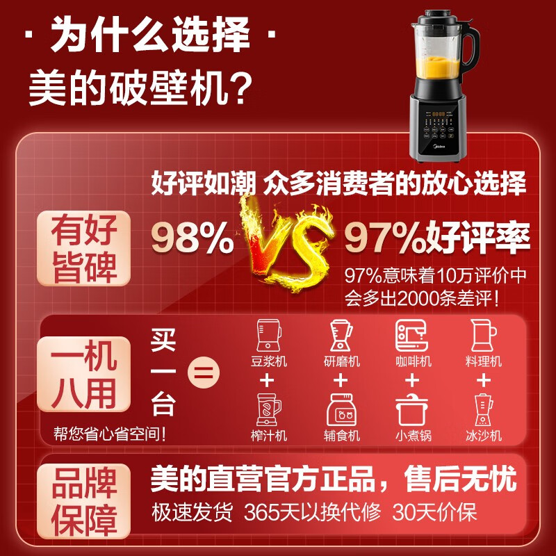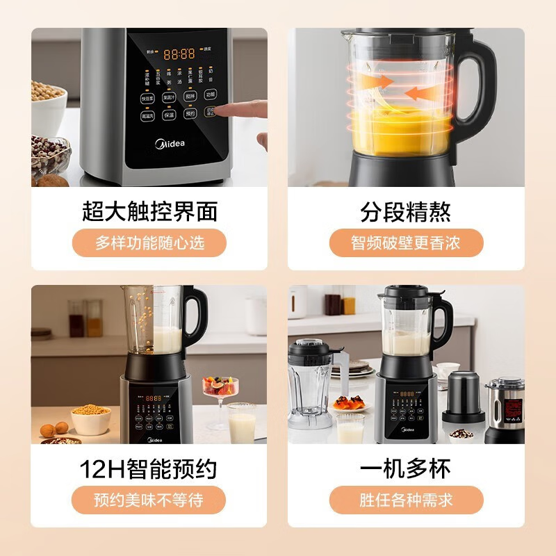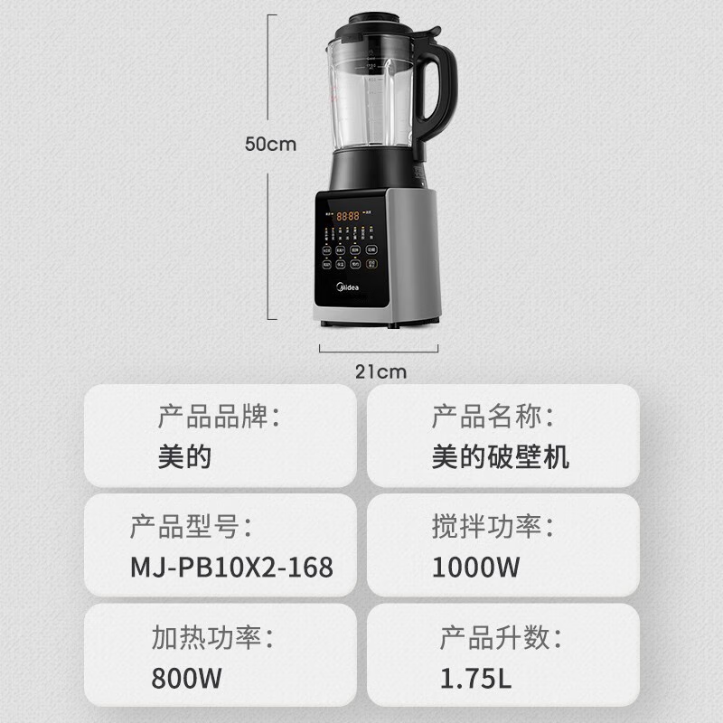 美的(Midea) 破壁机家用豆浆机大功率高转速搅拌机果汁机多功能磨粉无渣低噪免洗婴儿料理机商用 【双杯-热售断货款】MJ-PB10X2-168