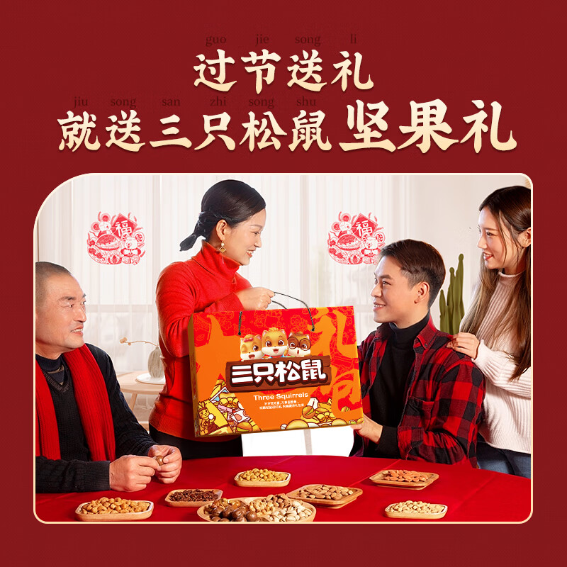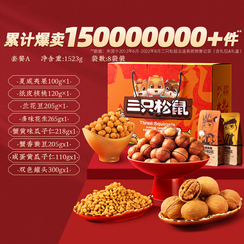 三只松鼠坚果礼盒8袋装1523g/1425g 过节送礼礼盒团购礼物零食大礼包每日坚果夏威夷果核桃(A/B套餐混发)