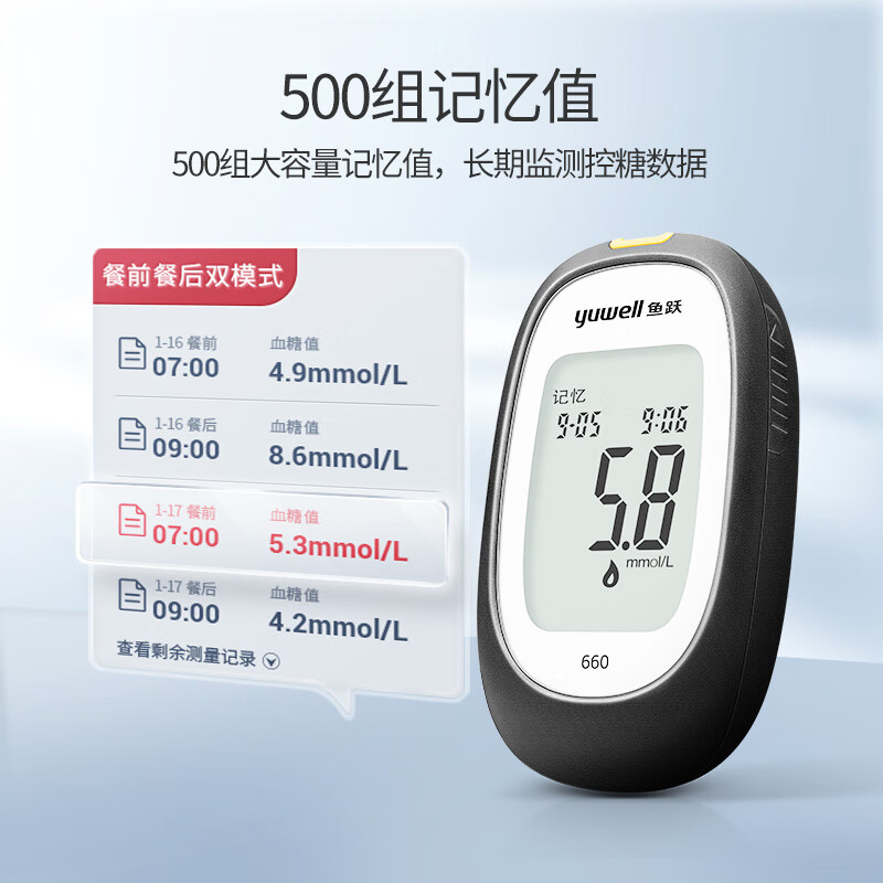 鱼跃(YUWELL)血糖仪660 医用升级款 脱氢酶准度提高 孕妇适用测血糖仪家用(100片血糖试纸+100支采血针)