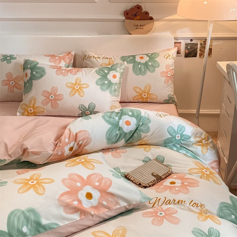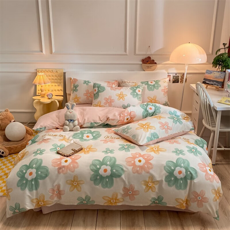 南方生活 床上四件套纯棉100%全棉床品套件简约ins风温馨被套加大双人床单被罩RY 花曳-粉 200*230cm被套床单款四件套