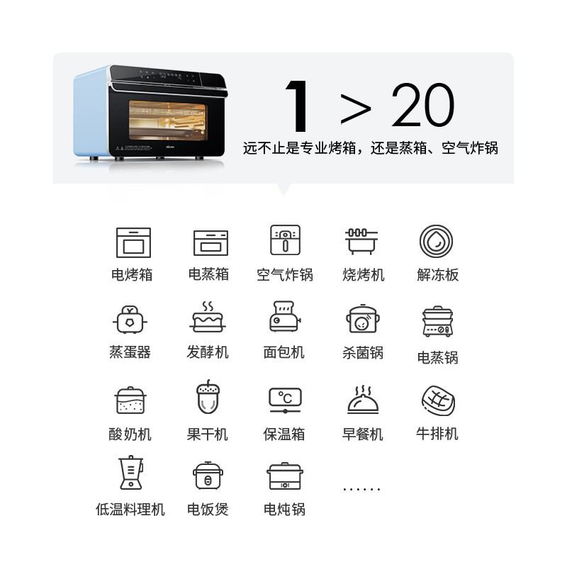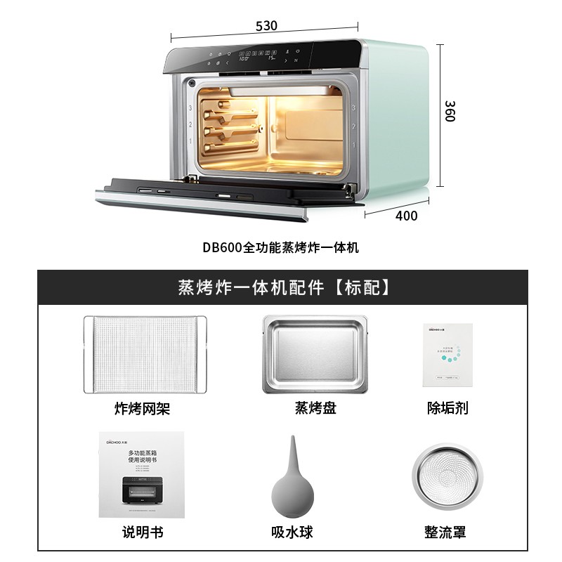 大厨【老板电器】蒸烤箱一体机台式 家用多功能蒸箱 空气炸烤箱 精准控温 网红爆款 DB600 柠檬青