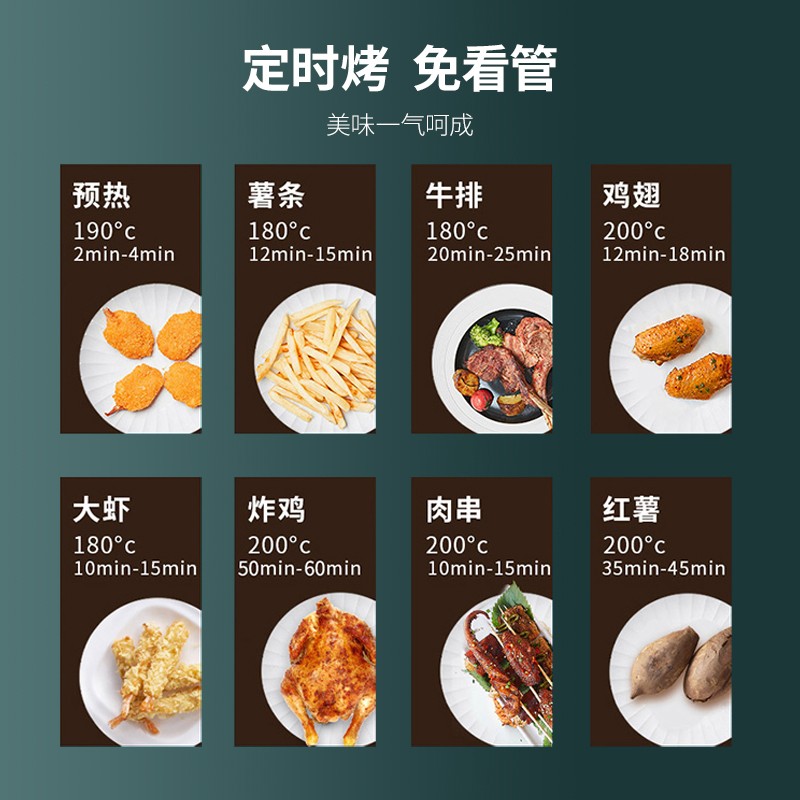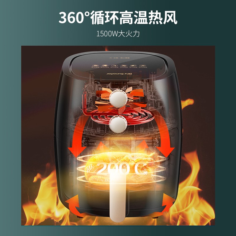 4.8升容量,1500W大火力,360°热风高速循环均匀加热。