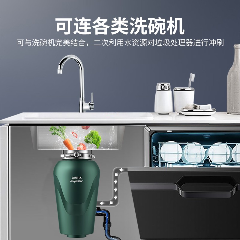 荣事达(Royalstar) 垃圾处理器家用厨房厨余湿垃圾粉碎机智能反转停机免打孔无线开关可接洗碗机 S6 静谧绿