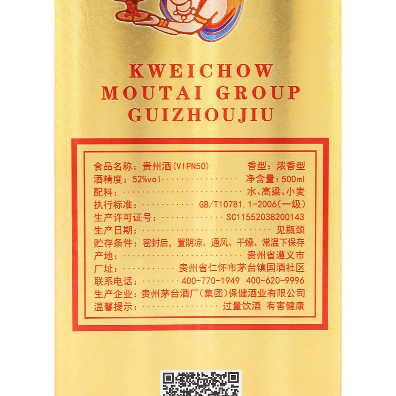 茅台集团贵州酒 VIP.N50帝王金52度500ml单瓶浓香型白酒 送礼宴请 贵州茅台酒厂(集团)保健酒业有限公司