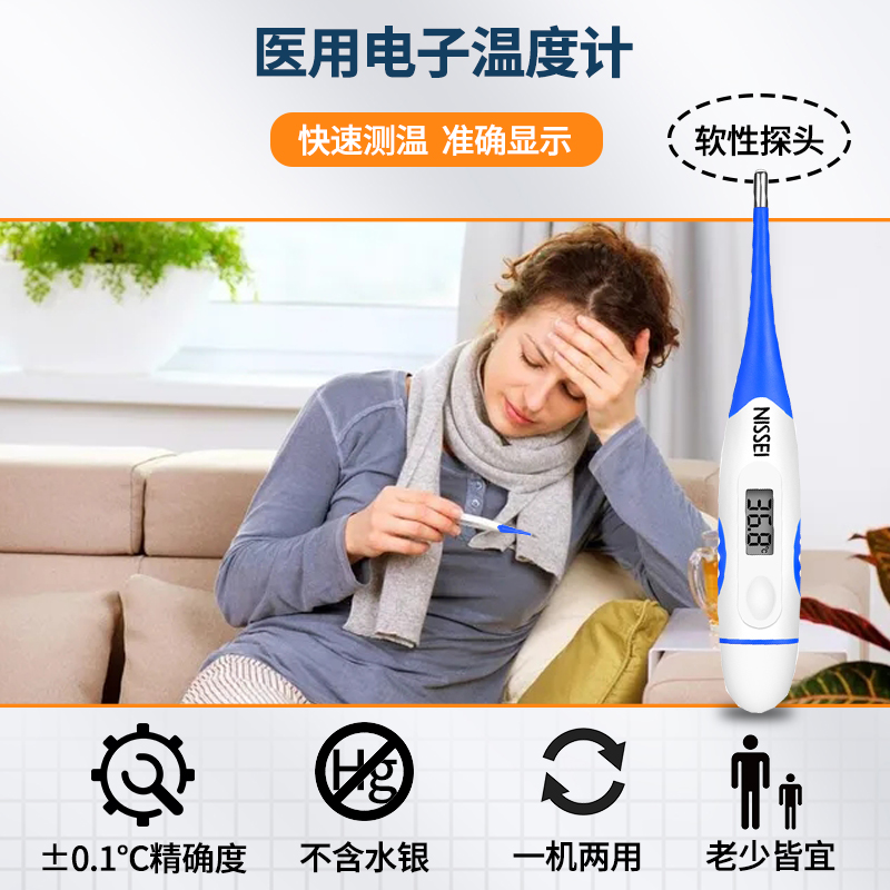 日本nissei尼世电子体温计家用婴幼儿成人儿童腋下口腔医用温度计 软性探头MT-219