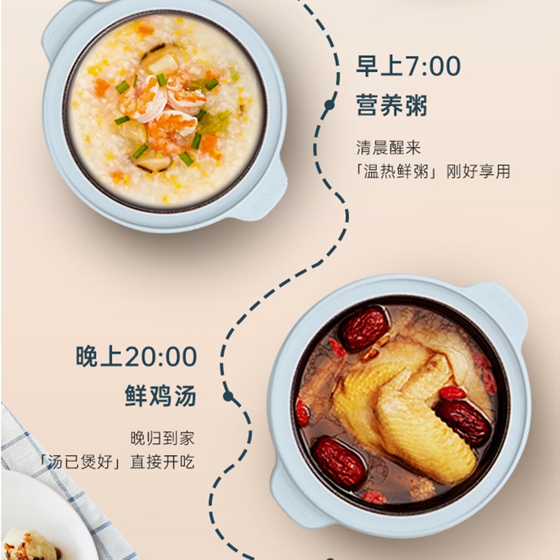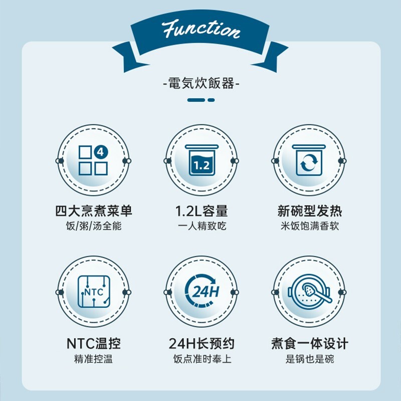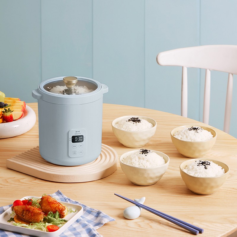 BRUNO 日本迷你复古电饭煲1.2L小型2人宿舍煮饭煲汤家用多功能电饭锅分体式可手提不粘锅内胆 海盐蓝【升级可预约智能款|四大菜单】