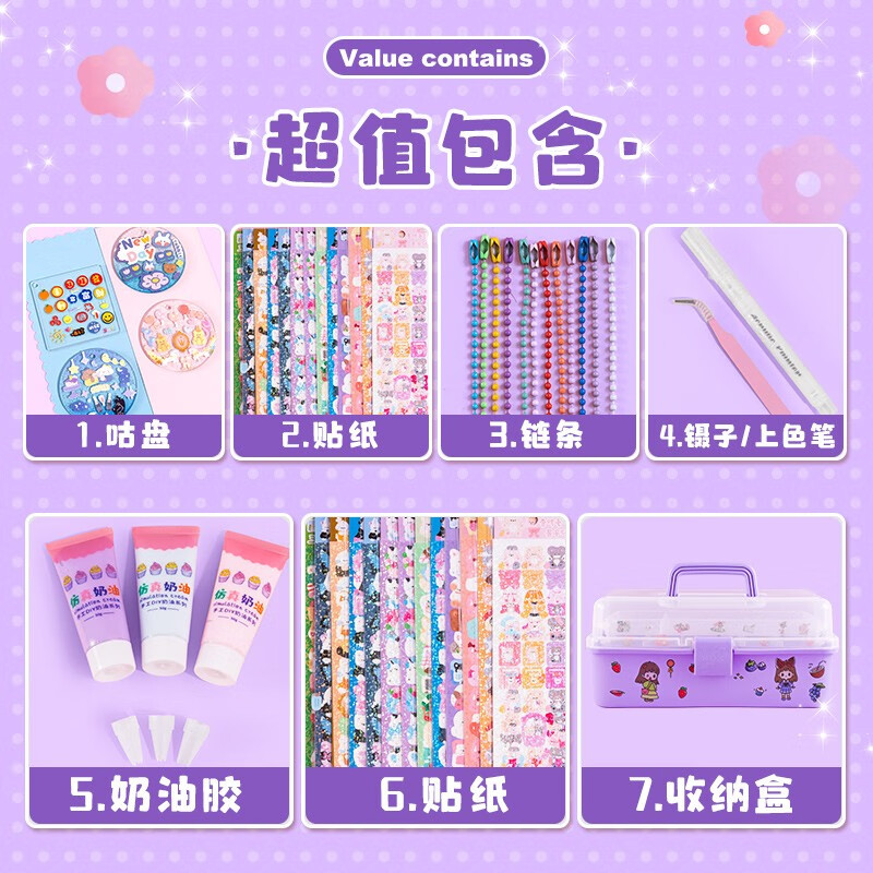 咕卡奶油胶套装diy咕卡盘贴纸小圆盘儿童手账玩具全套工具随心配古卡收纳盒套装豪华大礼包 213件奶油咕卡