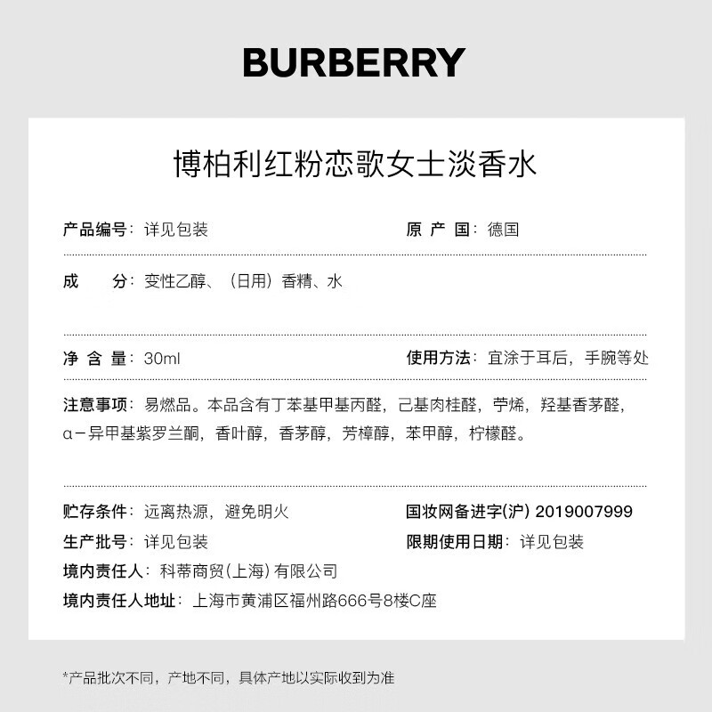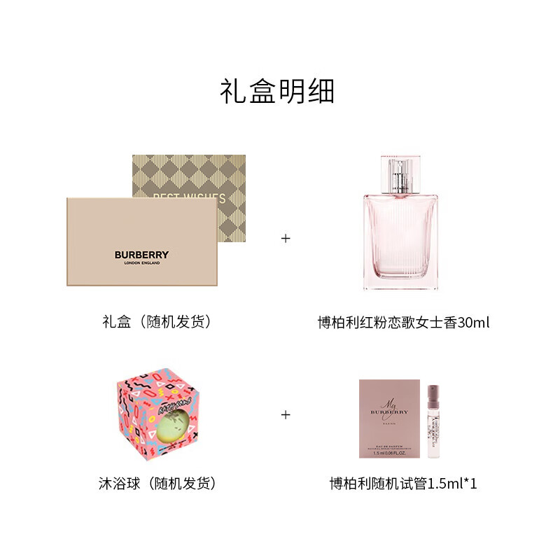 博柏利(BURBERRY)红粉恋歌女士礼盒(香水30ml+1.5ml*1+沐浴球*1)圣诞礼物生日礼物