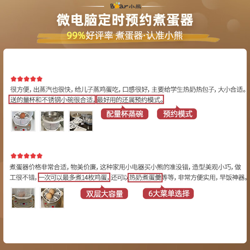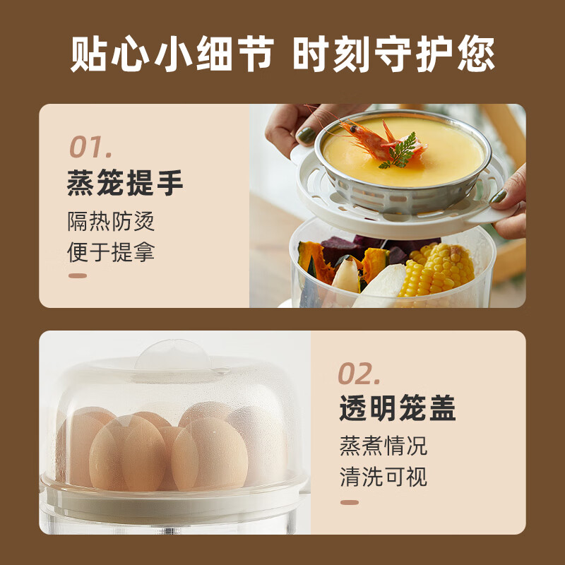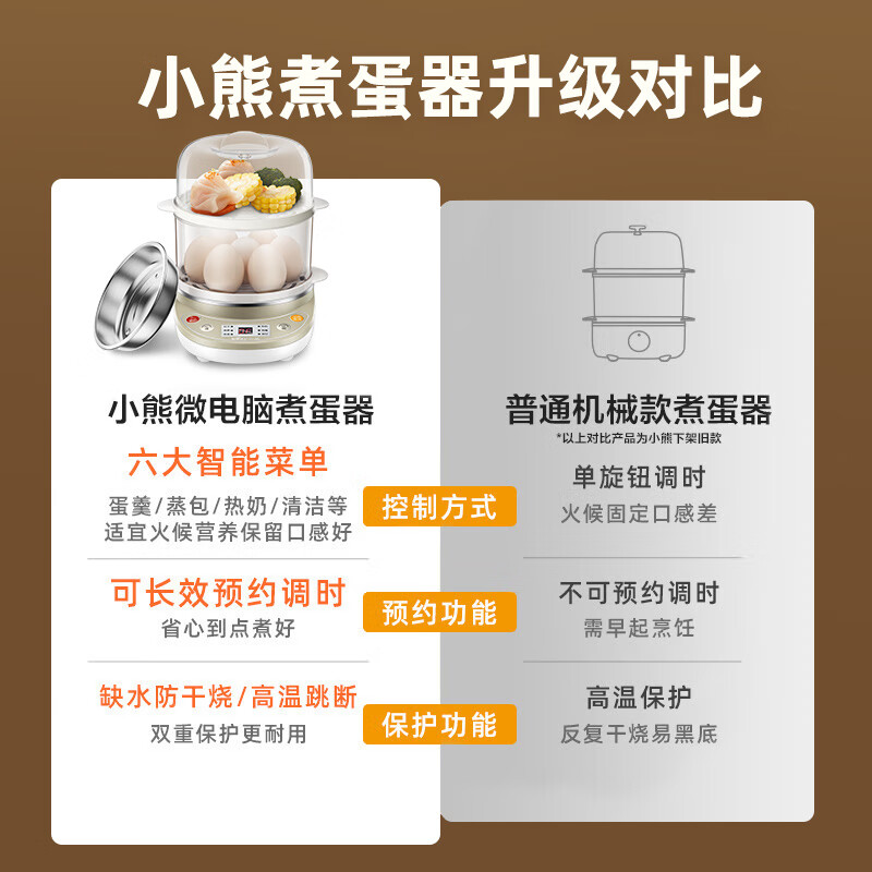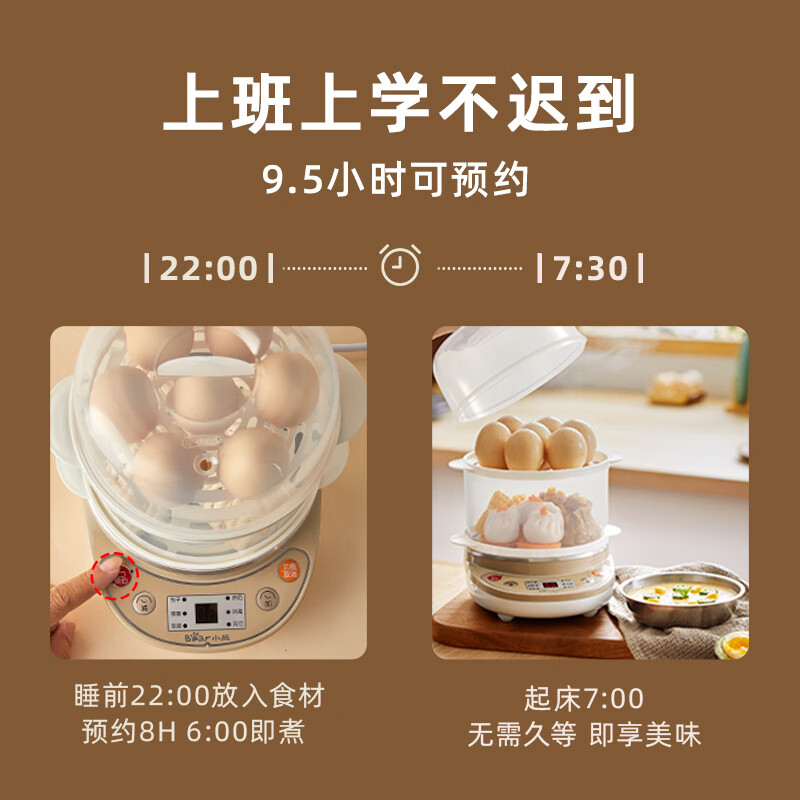 小熊(Bear)煮蛋器 蒸蛋器 家用早餐迷你机 自动断电微电脑预约定时双层蒸锅 可煮14个蛋 ZDQ-C14A1
