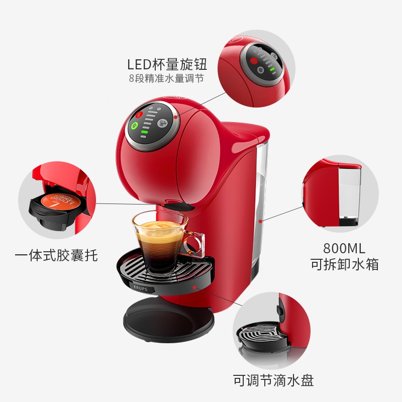 DOLCE GUSTO雀巢多趣酷思(Nescafe Dolce Gusto) Genio S Plus小精灵咖啡机 全自动咖啡机 樱桃红