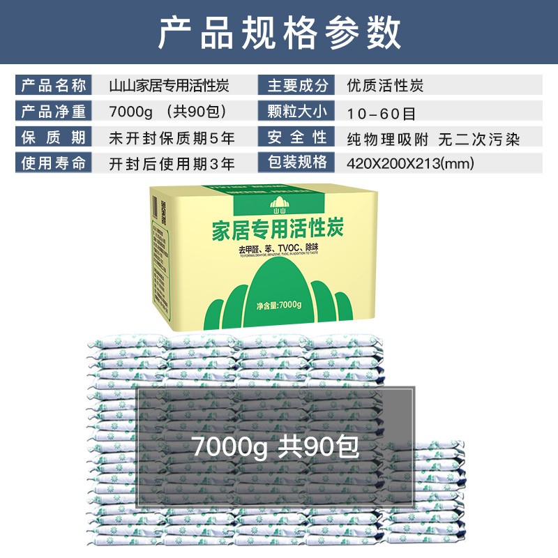 山山活性炭7kg除甲醛异味新房去吸味甲醛清除剂除味活性炭除甲醛碳包