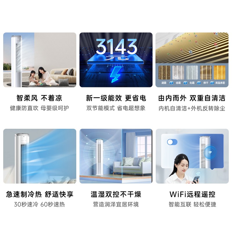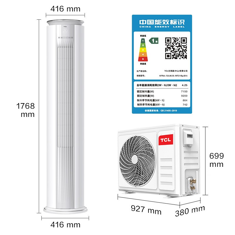TCL空调 立柜式 新一级能效 变频冷暖 智慧柔风 智能 自清洁 客厅圆柱立柜式空调 JD以旧换新 智臻 3匹 适用面积:28-45㎡ 新能效空调