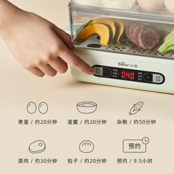 小熊(Bear)煮蛋器 家用多用途电蒸锅 早餐蒸点心蒸蛋器 可预约定时 自动断电 双层可煮14个蛋 ZDQ-B06N3