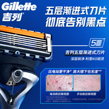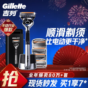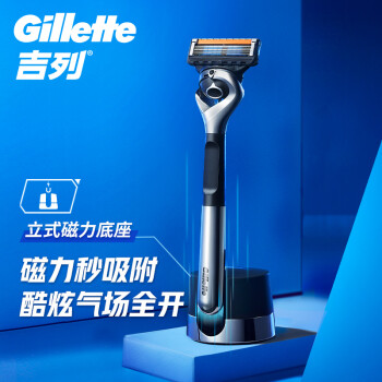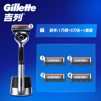 吉列剃须刀手动刮胡刀5层锋隐致顺引力盒1刀架5刀头+底座新年礼物