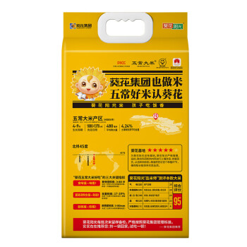 葵花阳光五常大米5kg稻花香2号粳米东北大米香米新米