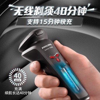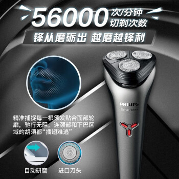 飞利浦(PHILIPS)电动剃须刀 原装进口三刀头全身水洗胡须刀 干湿两用刮胡刀 新S1000系机皇升级款【风驰切剃】
