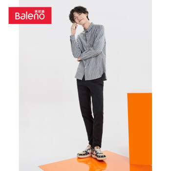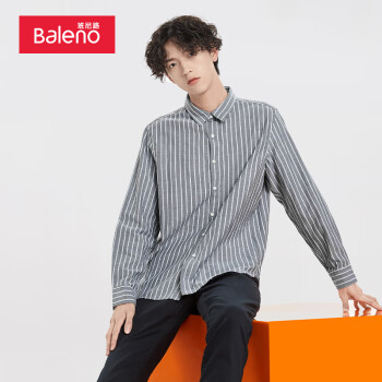 班尼路(Baleno)春季 衬衫男长袖弹力牛津纺潮流休闲舒适青少年翻领上衣男士条纹 02S-88004029 L