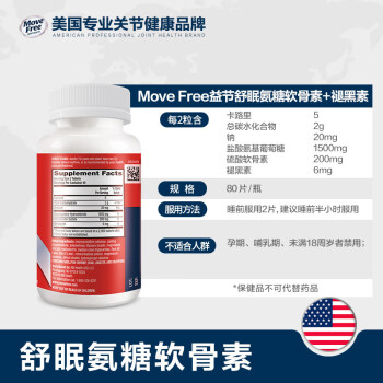 Move Free益节褪黑素氨糖紫瓶 美国进口褪黑素 成人中老年人维骨力护关节