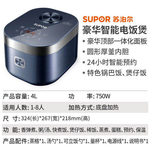 苏泊尔(SUPOR)电饭煲4L电饭锅电饭锅多功能一体家用蓝钻圆厚釜4-5人可做锅巴饭煲仔饭智能预约蒸米饭1-8人 SF40FC875 4升预约定时