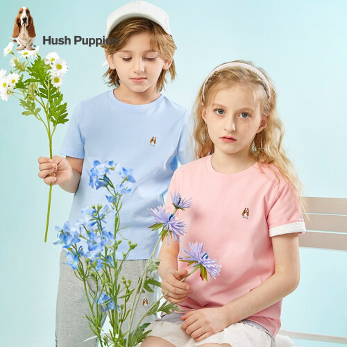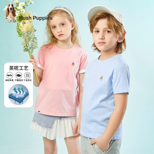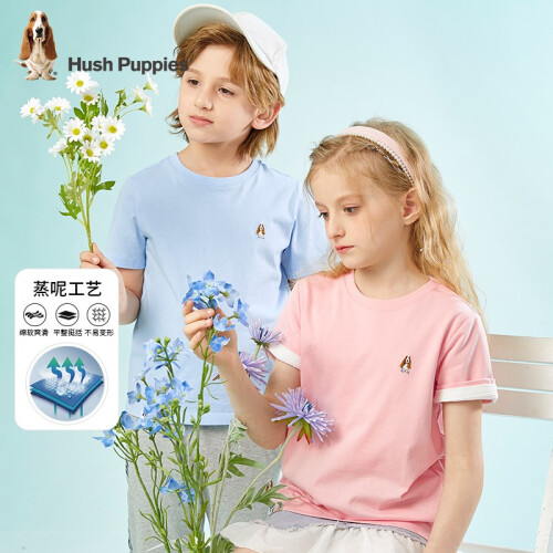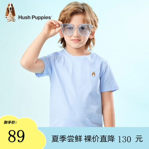 暇步士童装男童女童T恤夏季新款大童舒适短袖T恤 冰晶蓝 160cm