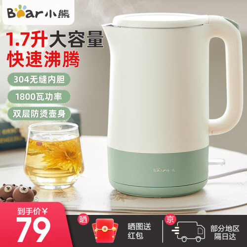 小熊(Bear)烧水壶 电水壶 电热水壶热水壶1.7L大容量304不锈钢1800W大功率智能自动断电开水壶暖水壶 ZDH-R17B2【1.7升 1800W速热】