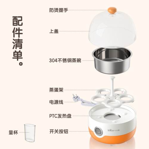 小熊(Bear) 煮蛋器蒸蛋器单层家用自动断电迷你鸡蛋羹蒸鸡蛋器蒸蛋机炖蛋器蒸蛋锅防干烧便携式电蒸锅