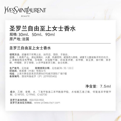 圣罗兰(YSL)自由至上女士香水7.5ml(小样)【美妆专享】