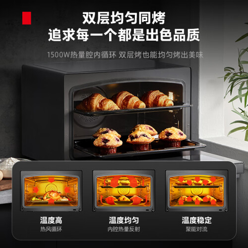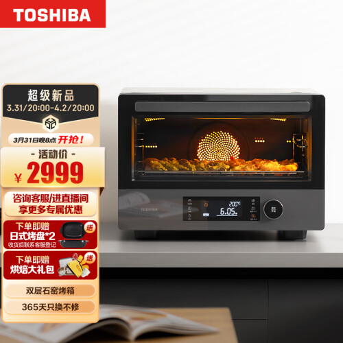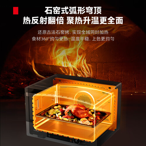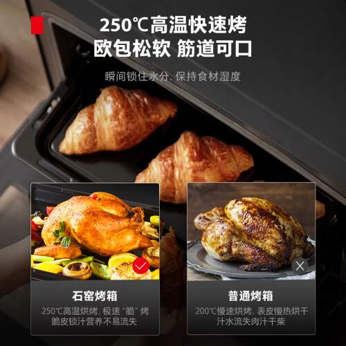 东芝特色石窑五面立体烤,250度高温多层同烤,低脂低卡锁鲜,高效又健康,38L大容量,五面立体加热,穹顶石窑结构,全隐藏烤管,365天只换不修。