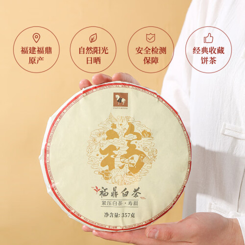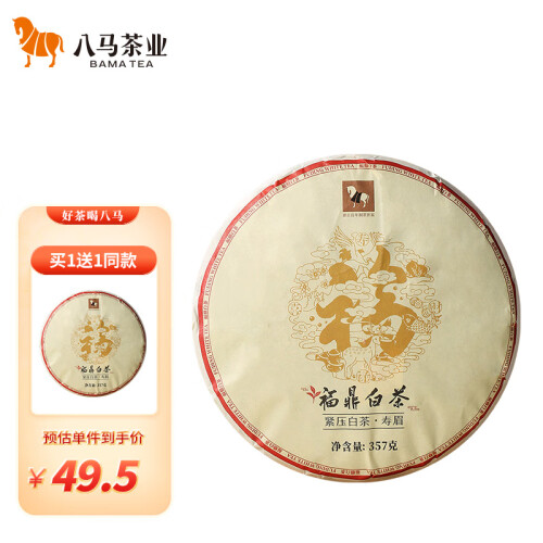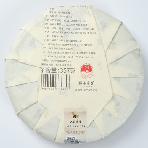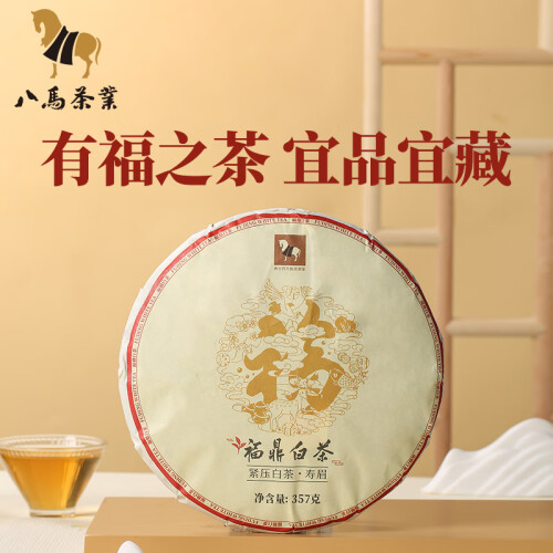 八马茶业 福鼎白茶 寿眉 太姥山原产地 经典白茶饼 茶叶饼装357g