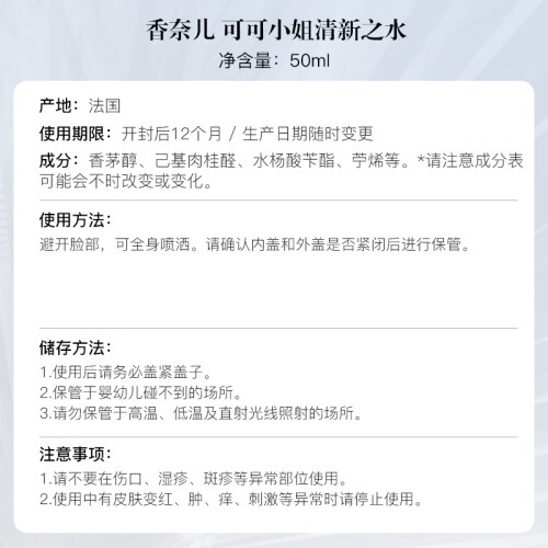 香奈儿(Chanel)可可小姐淡香水50ml 清新之水 女士香水 生日礼物 彩妆礼物