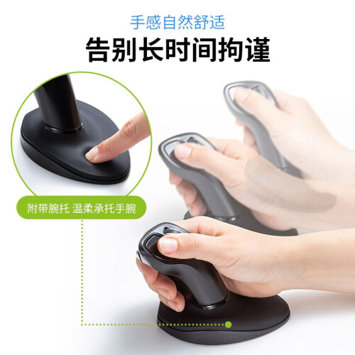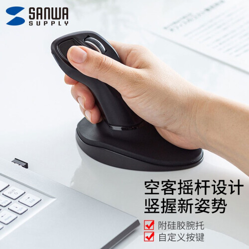 SANWA SUPPLY 人体工学无线鼠标 立式竖握 自定义按键 附软垫掌托 汽车档把设计 大手适用 黑色 无线 (附接收器)