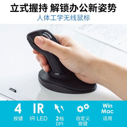 垂直竖握设计,保持手腕自然状态。每天面对电脑你的手部还好吗?为什么要采用人体工学鼠标?让山业为你解答!手臂呈现自然舒展,垂直把握轻松办公。手感自然舒适,告别长时间拘谨。,无线连接信号稳定传输。支持自定义按键左手同样适用。