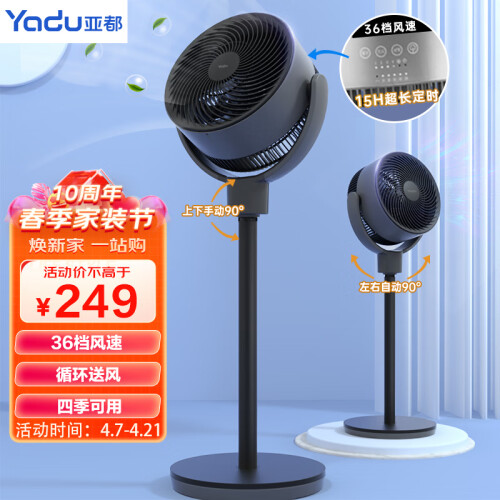 亚都(YADU)空气循环扇家用电风扇桌面小风扇台扇风扇小型办公学生宿舍涡轮扇摇头电扇 直流变频空气循环扇