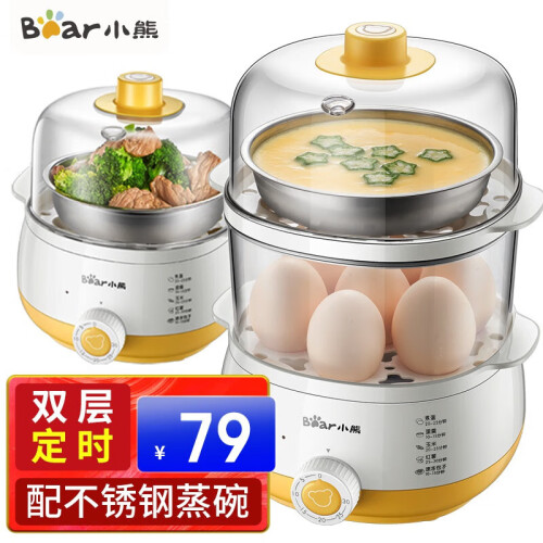 小熊(Bear) 煮蛋器迷你自动断电多功能煮鸡蛋早餐神器蒸鸡蛋羹双层大容量蒸蛋器 ZDQ-A14R1