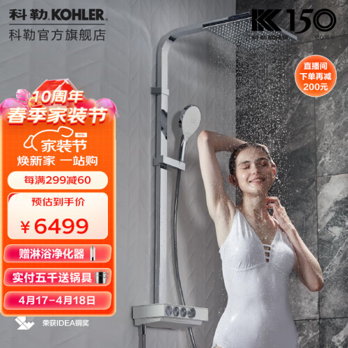 科勒(KOHLER) 科勒淋浴花洒艾贝灵控恒温双花洒淋浴柱卫生间龙头洗澡花洒龙头 23861T-9-CP(三出水)
