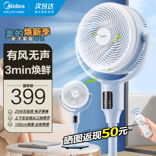 美的(Midea)电风扇空气循环扇家用空调伴侣遥控节能省电台立两用摇头直流落地扇卧室客厅轻音低噪循 【直流3D送风】GDG24JZR