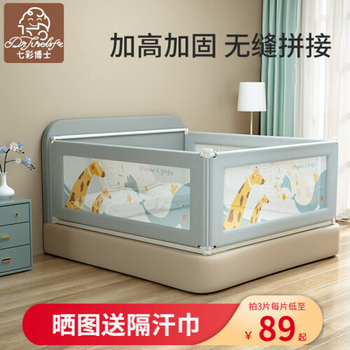 七彩博士【无缝拼接不夹手】婴儿床围栏床护栏儿童挡板宝宝安全防摔防掉护栏垂直升降床挡板1.8米2通用 灰色长颈鹿【无缝设计+秒换床单】 2米(单面)