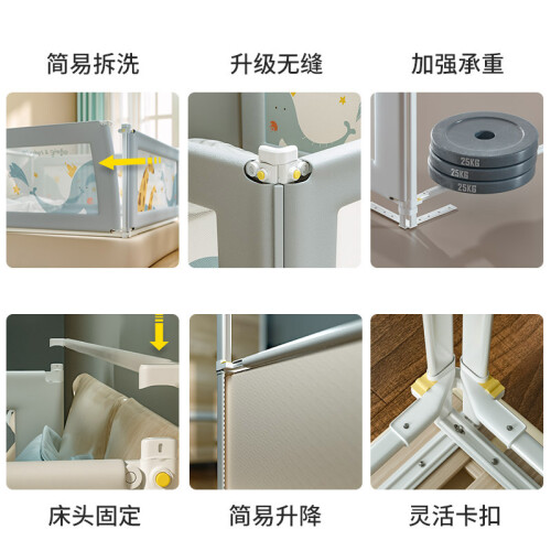 稳固不晃,无缝拼接,垂直升降,无凹起,无缝隙,安全稳固,分离式设计,全新升级,升降杆,进出无障碍,紧压床垫,不压手脚,加厚钢管,加强承重,一键按钮,轻松拆洗,单边升降,单手操作,床头横杠,稳固加倍,加高设计,防止宝宝翻越,不同档位调节,厚薄通用,不挑床垫,双重锁保护,加厚棉官,柔韧防撞。