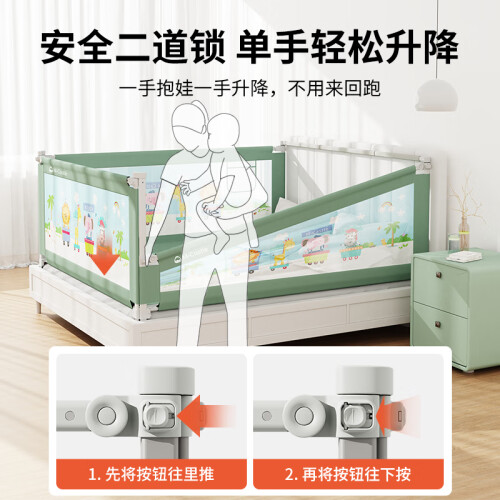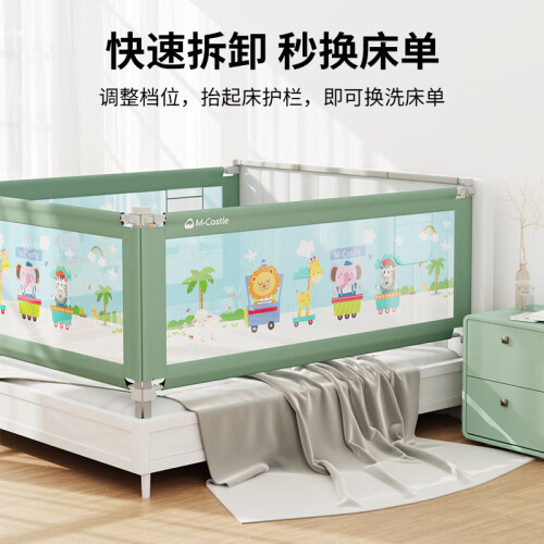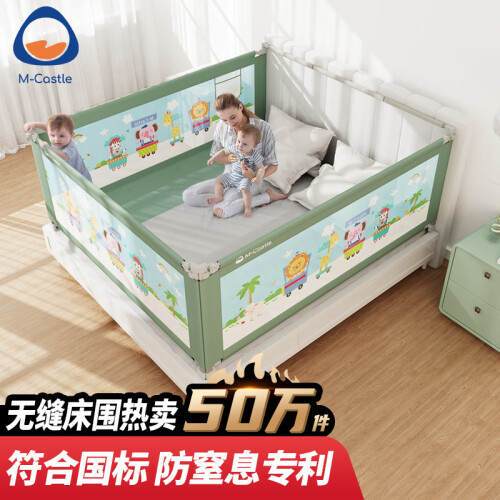 M-CASTLE德国床围栏婴儿童床上防摔床护栏宝宝床边防掉床挡板防窒息床围挡 冰绿色2.0米/防窒息款-单面装