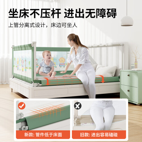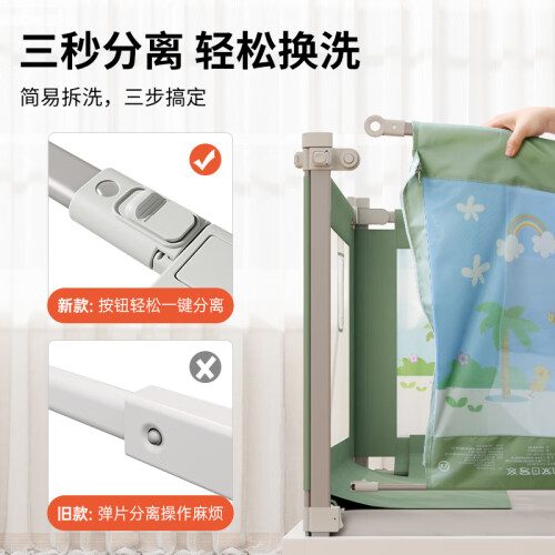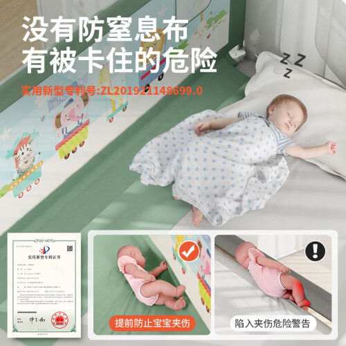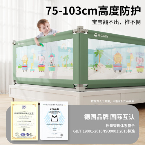 德国M-Castle慕卡索床护栏,建议宝宝会翻身的时候,就要安装床护栏了自床护栏诞生以来,曾发生多起夹死夹伤宝宝的事故,CCTV13质量报告、CCTV2财经新闻,均在2019年报告了儿童床护栏”存在窒息风险、夹伤风险和跌落风险”的安全隐患。这款采用防窒息的设计,护栏和床之间没有缝隙,防止孩子被卡脖子,相比市面上的L型防夹,和织带型防夹更为安全【L型存在使用位移产生缝隙,织带型无法杜绝缝隙问题】