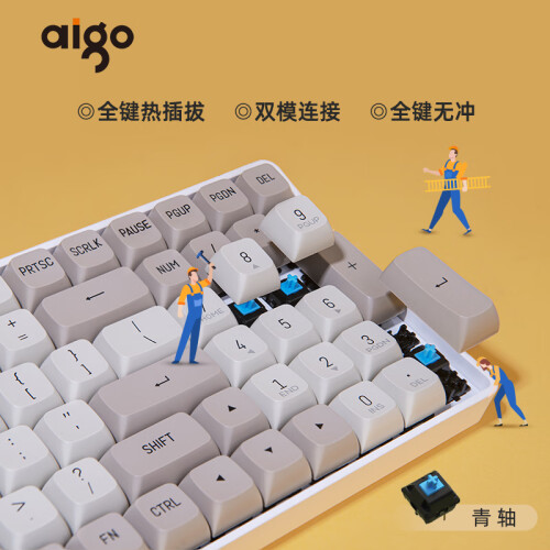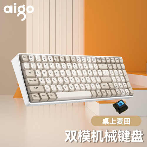 爱国者(aigo) A100青轴奶咖色 无线充电机械办公键盘电竞有线键盘游戏电脑笔记本外接键盘