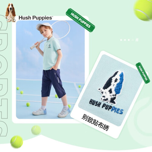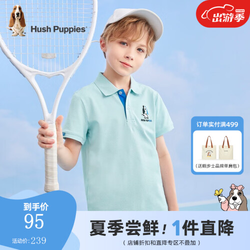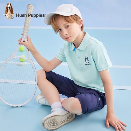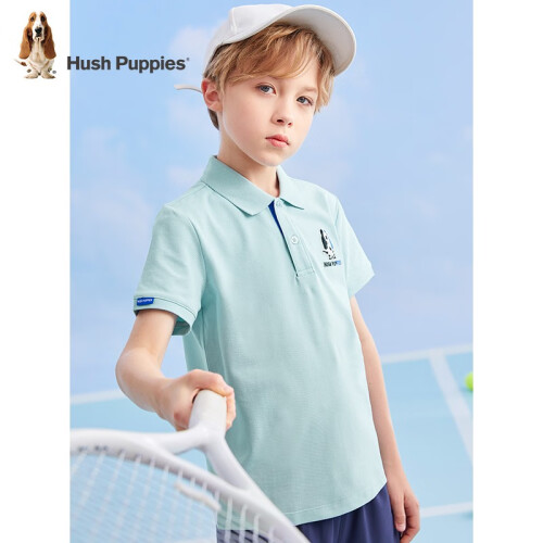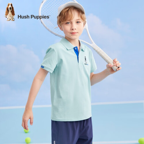 暇步士(Hush Puppies)童装儿童夏装短袖男童23年夏季新款男大童简约纯色时尚短袖polo衫 玻璃蓝 140cm