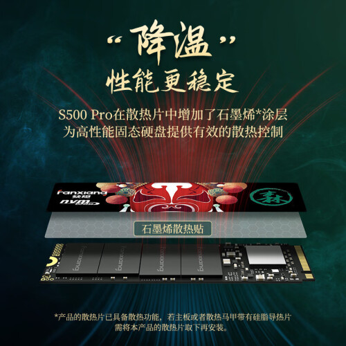 该硬盘读写速度可达3500MB/s、3150MB/s,S500pro在散热片中増加了石墨烯涂层,为高性能固态硬盘提供有效的散热控制,使硬盘能持久且可靠的工作运行。精选原厂3D NAND颗粒,确保产品的使用寿命与稳定性。平均无故障工作时间150万小时。且支持5年质保