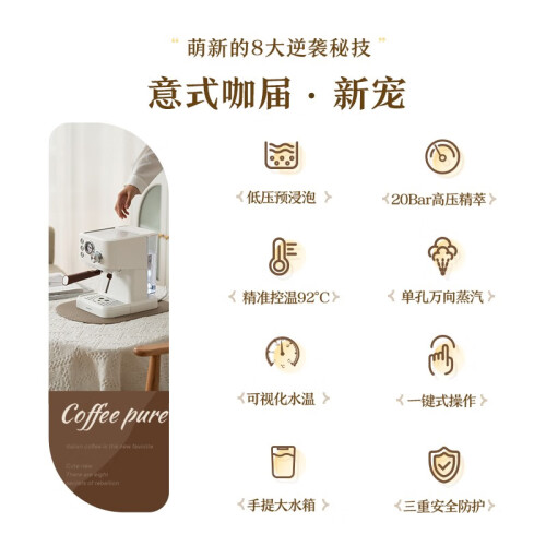 咖啡町(KOHIMACHI)咖啡机 意式半自动咖啡机家用全自动咖啡机奶泡机20Bar高压打奶情人节礼物送礼送长辈礼品 美的咖啡机 MA-KFE03