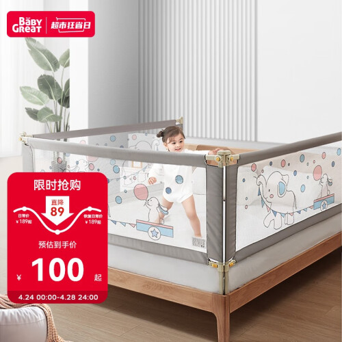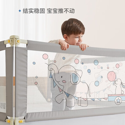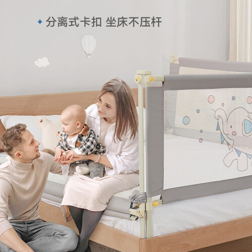BABYGREAT婴儿床围栏防摔防护栏床围防掉床神器垂直升降床护栏无缝不卡手 【北欧风】单杆-莫兰迪灰 单片-1.8米