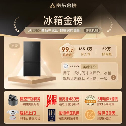 海尔(Haier)545升星蕴系列一级能效十字双开对开门四开门家用电冰箱母婴超薄BCD-545WFPB超大容量精细分储