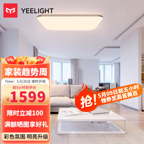 Yeelight 智能光璨氛围客厅led吸顶灯卧室灯客厅灯餐厅灯套餐HomeKit控制多彩调节 光璨Pro【氛围灯版】