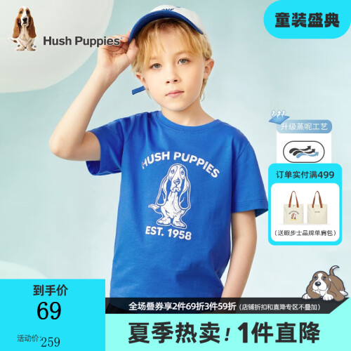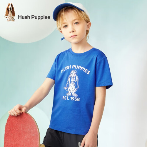 暇步士(Hush Puppies)童装男童女童短袖夏季新款男女大童舒适时尚短袖 宝蓝 170cm
